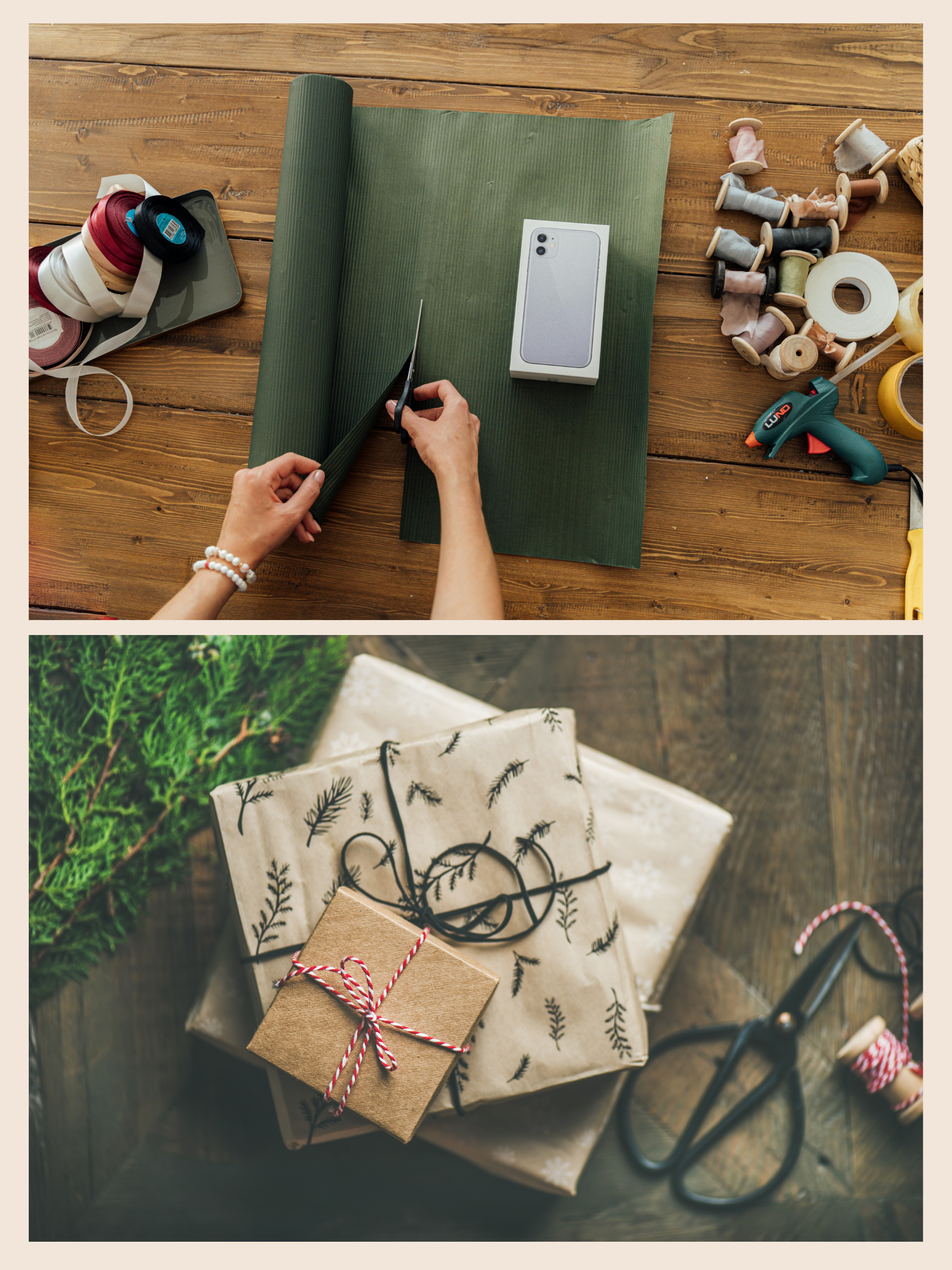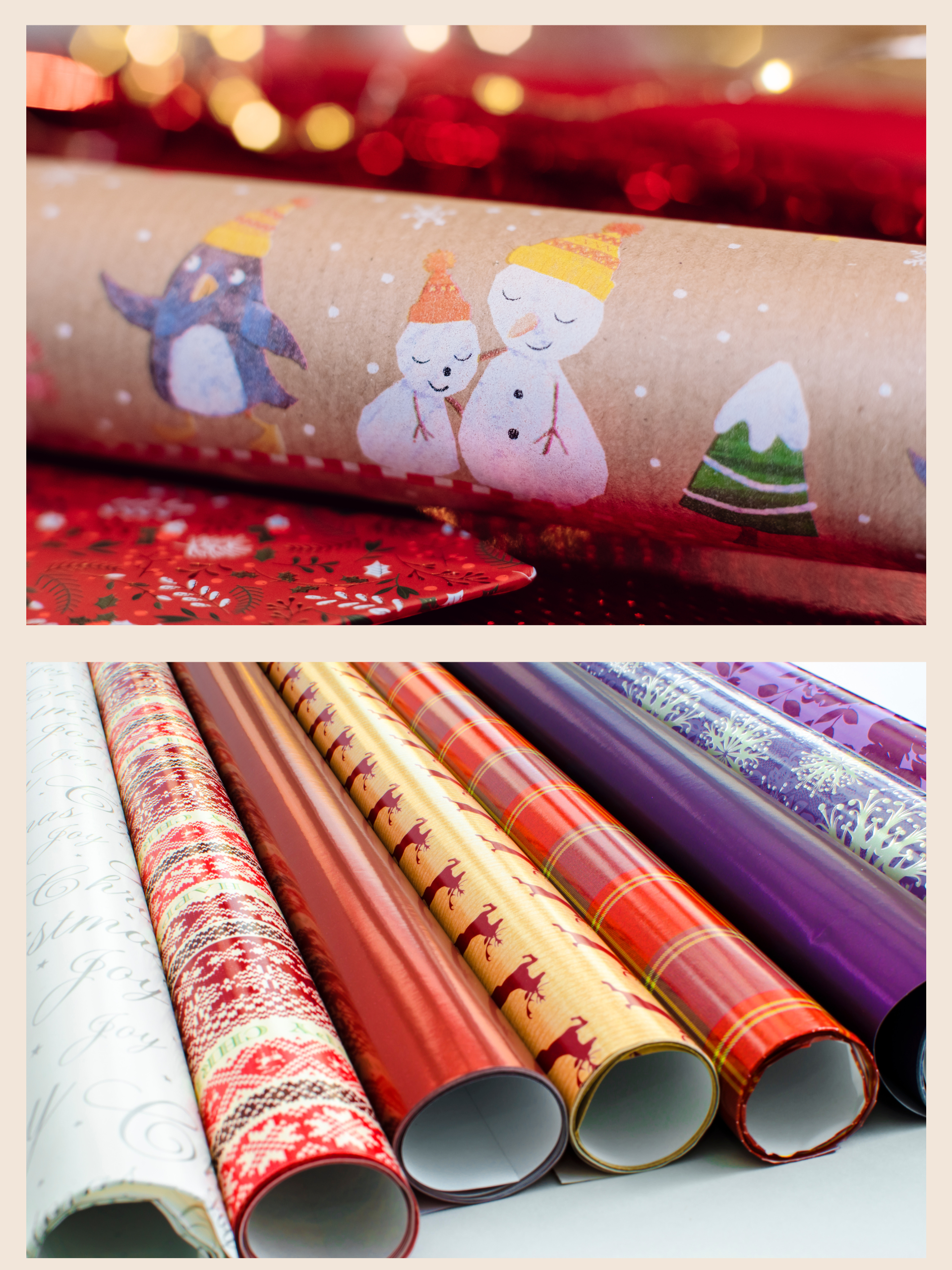 - Riutilizza la carta da regalo ancora in buono stato per nuovi pacchetti, lavori creativi, collage, quaderni, decorazioni casalinghe.