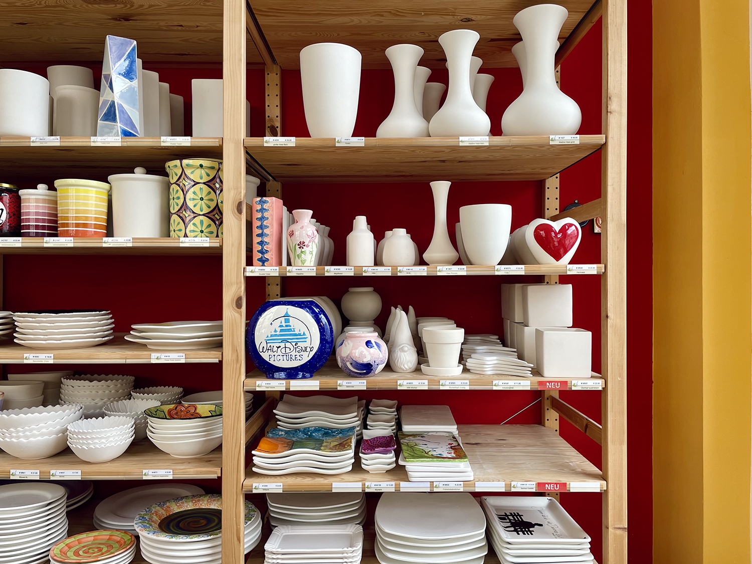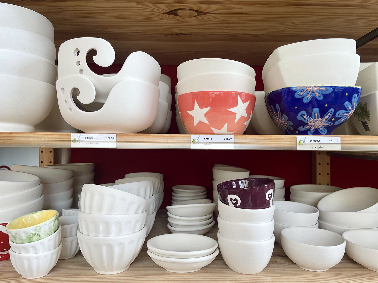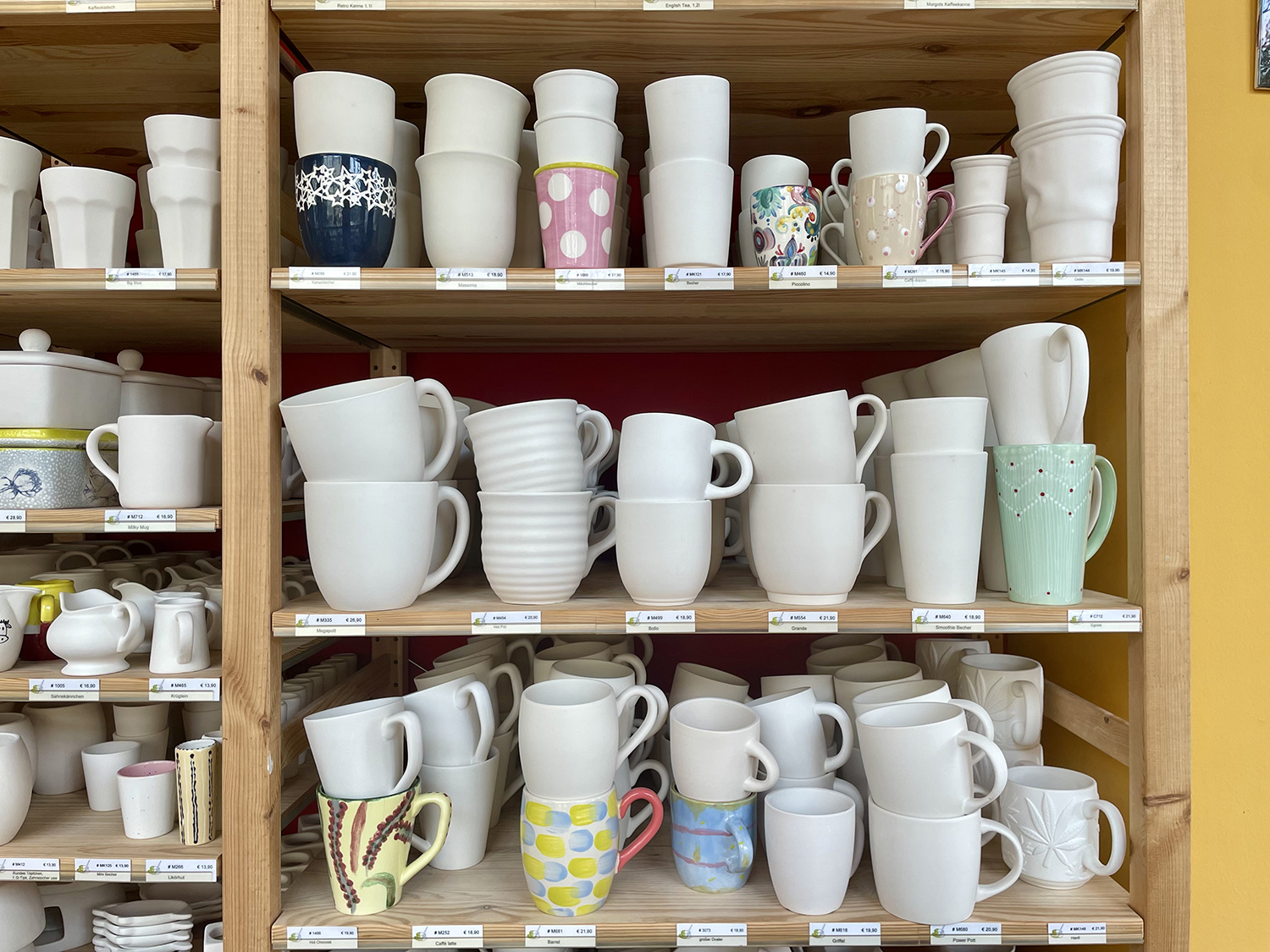 - Oggetto: scegli l’oggetto in ceramica che vuoi dipingere dagli scaffali del negozio; ci sono tantissime forme e misure.