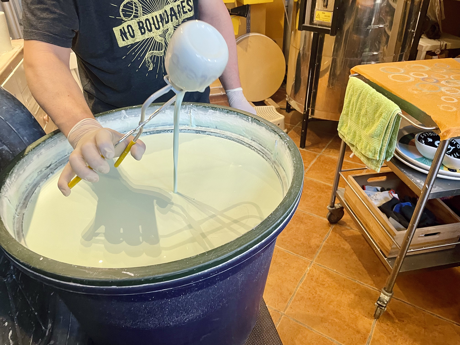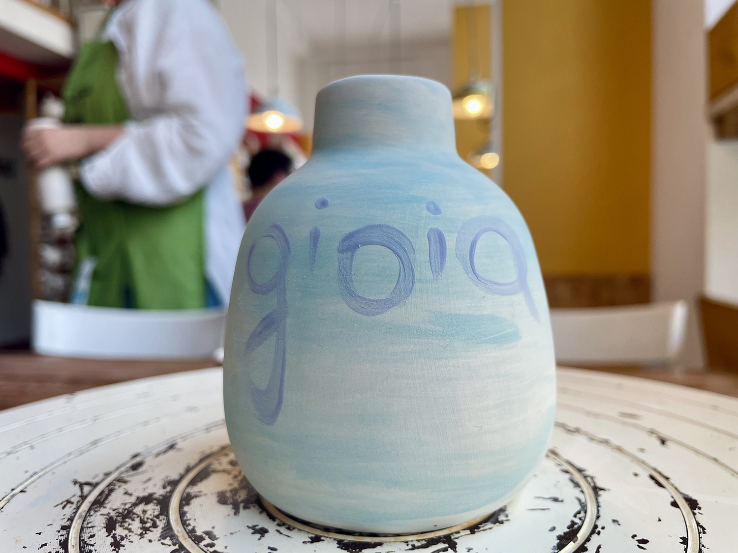- Smaltatura e cottura: quando hai finito di dipingere il tuo pezzo, firmalo col tuo nome o le tue iniziali (basta un piccolo segno) e consegnalo allo staff che se ne prenderà cura; prima con la smaltatura per immersione (il metodo con cui l’oggetto di ceramica viene rivestito da smalto e reso quindi impermeabile e lavabile in lavastoviglie); poi con la cottura in forno; tieni presente che i colori, una volta cotti, saranno più forti, vividi e brillanti; in negozio ci sono alcuni esempi dimostrativi del “prima e dopo” in modo da evitare sorprese indesiderate nel risultato finale.