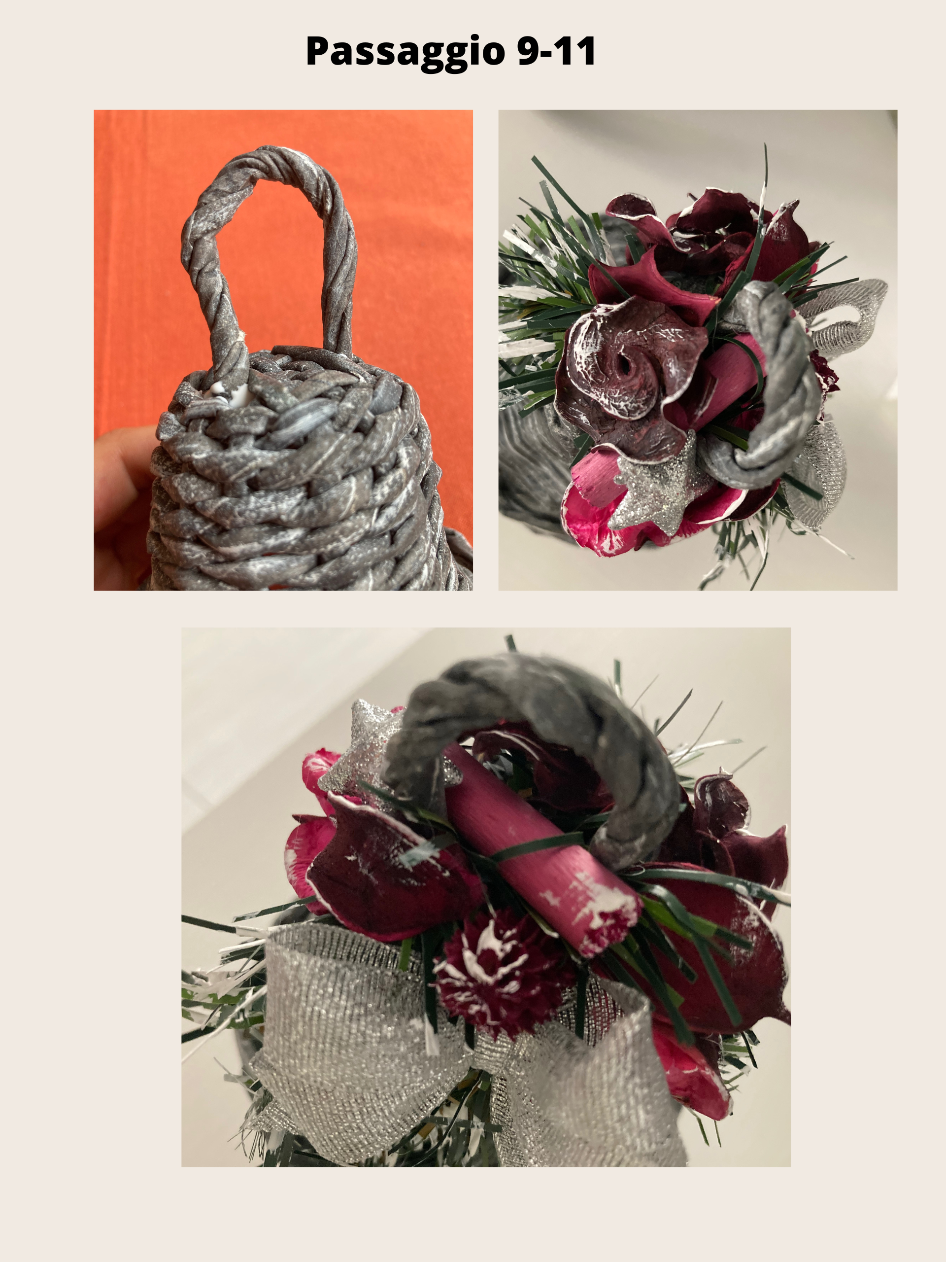 - un piccolo barattolo di latta e una campanella di polistirolo da utilizzare come tutori per l’intreccio;