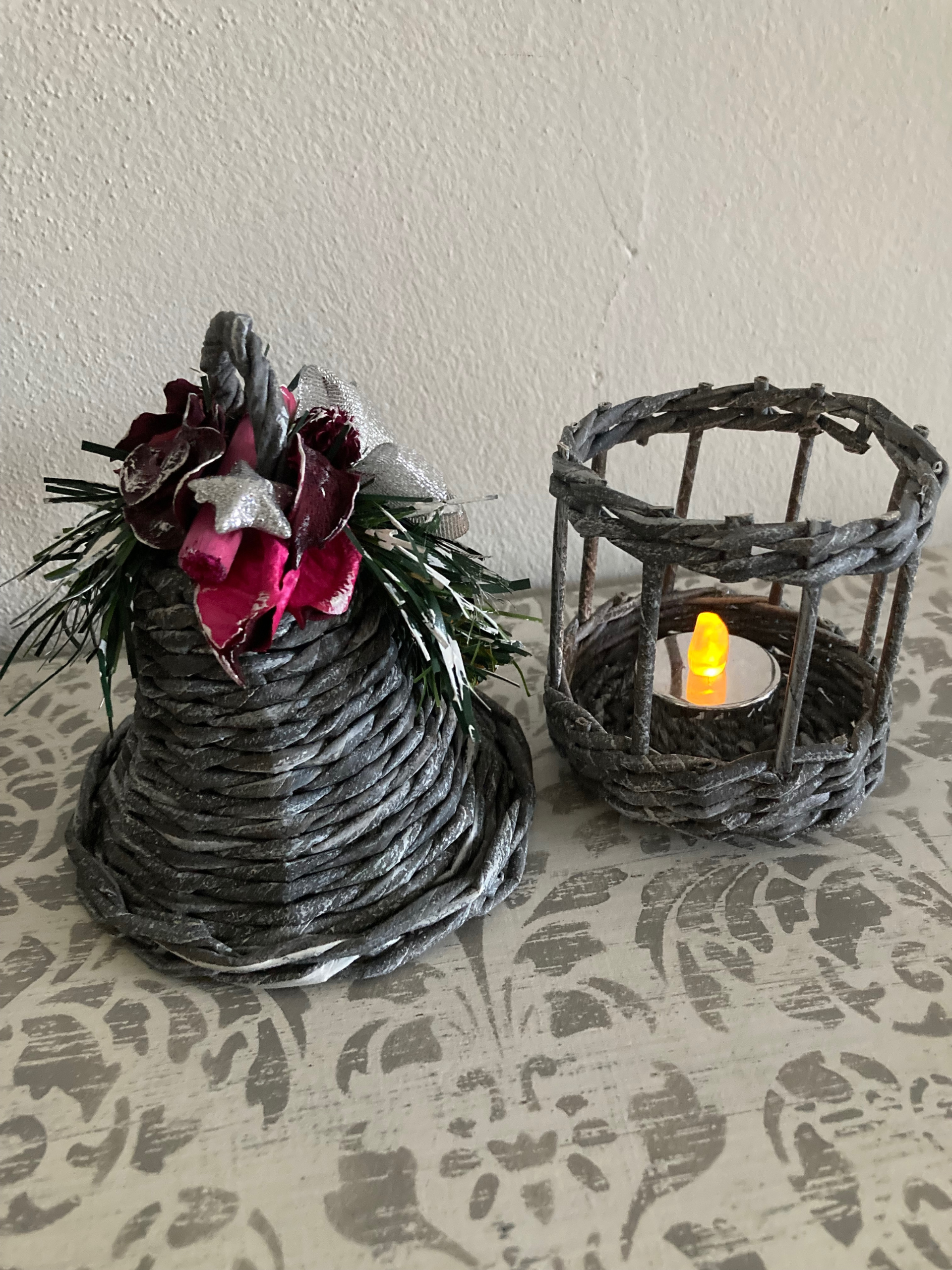11. Una volta asciutto non ti resta che decorarla come più di piace. Io ho utilizzato dei rametti di abete e degli elementi naturali e li ho sbiancati con un po’ di acrilico bianco per creare un piacevole effetto innevato.