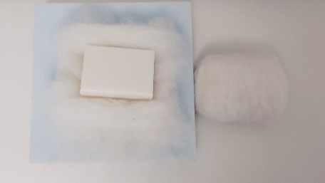 Avvolgi con la lana bianca, in modo verticale, la saponetta; fatto il primo strato, fai il secondo ma in modo orizzontale; il terzo poi di nuovo in modo verticale e da ultimo, il quarto, strato ancora in modo orizzontale. A questo punto, con acqua saponata tiepida, bagna tutta la saponetta avvolta di lana e inizia a massaggiarla, quindi infeltrirla. Sarà pronta quando la lana farà una buona aderenza al sapone.