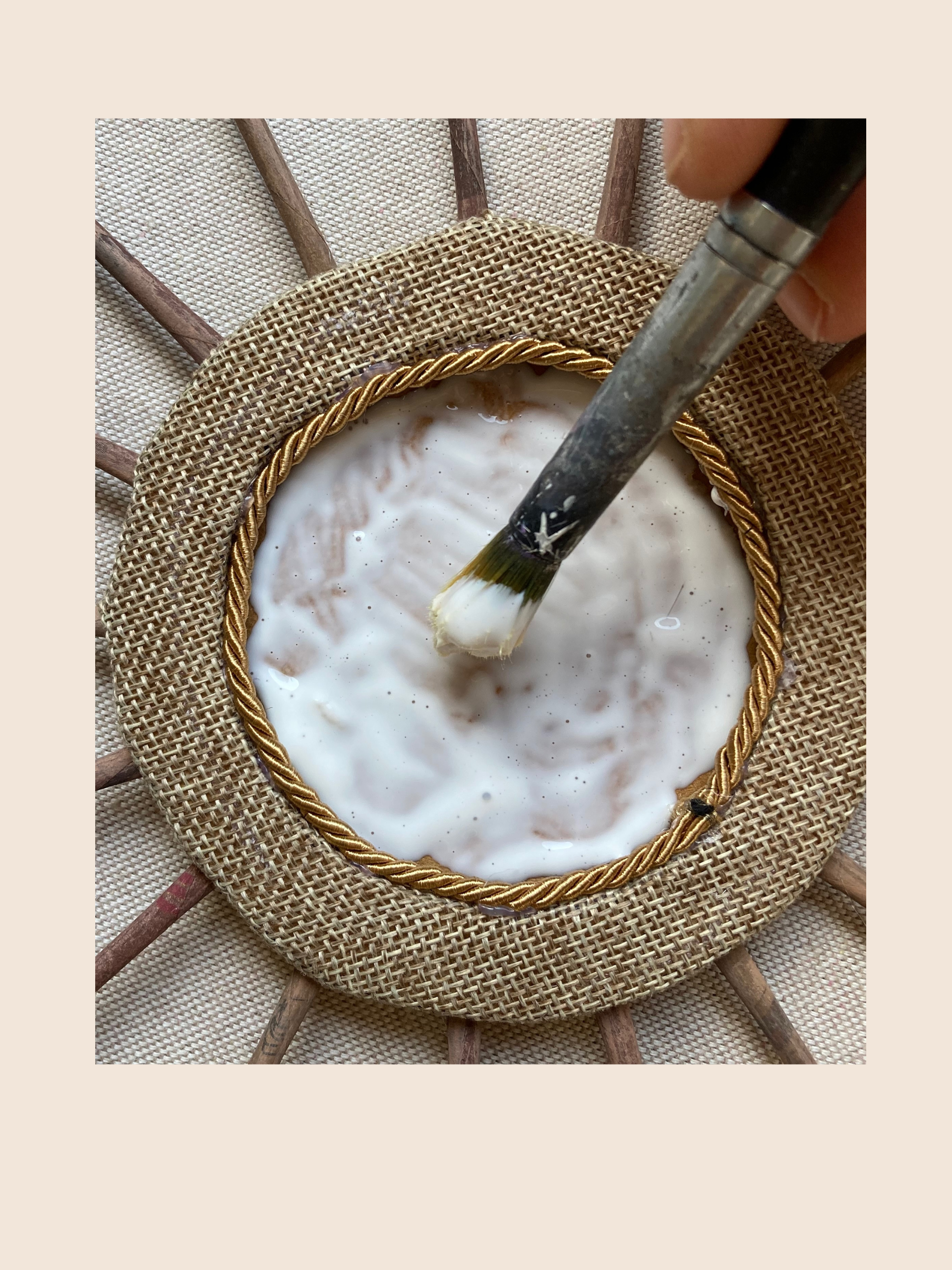 Al lavoro ultimato, passa una mano di colla vinilica diluita per proteggere la tua scatola con coperchio intrecciato di cannucce di carta.