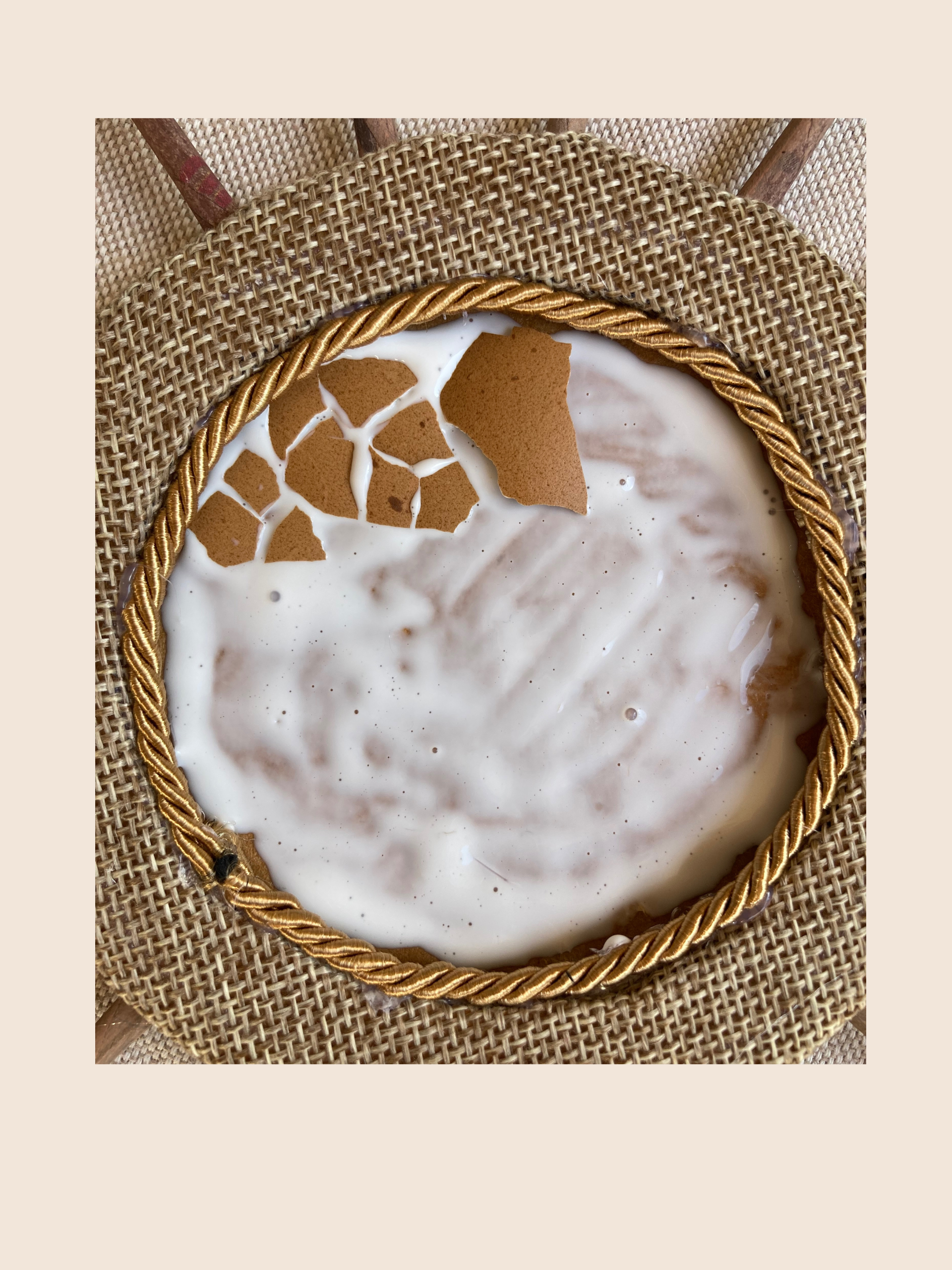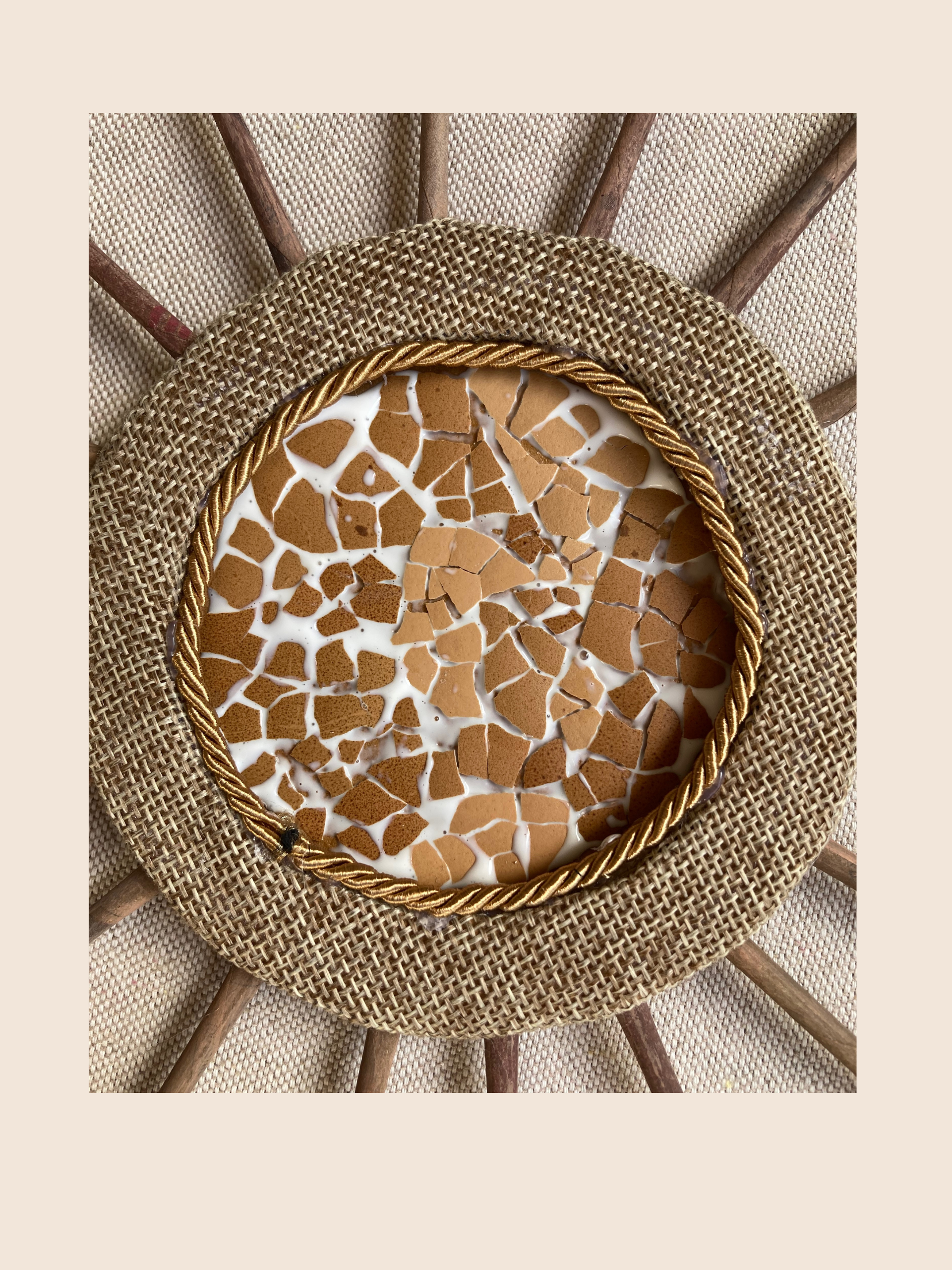 Applica una generosa mano di colla vinilica nella parte centrale e distribuisci i gusci d’uova creando un piacevole effetto mosaico e lascia asciugare.